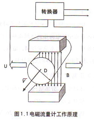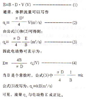 在圖1.1中,當(dāng)導(dǎo)電流體以平均V(m/s)通過裝有一對(duì)測(cè)量電*的一根內(nèi)徑為D(m)的絕緣管子流動(dòng)時(shí),并且該管子處于一個(gè)均勻的磁感應(yīng)強(qiáng)度為B(T)的磁場(chǎng)中。那么,在一對(duì)電*上就會(huì)感應(yīng)出垂直于磁場(chǎng)方向和流動(dòng)方向的電動(dòng)勢(shì)(E)。由電磁感應(yīng)定律可寫做(1)式: