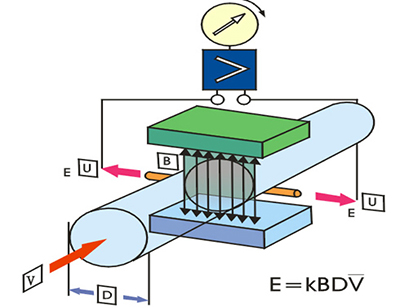 ,則可以證明,只要管道內(nèi)流速分布為與軸對(duì)稱分布,則兩電*間將產(chǎn)生感生電勢(shì)