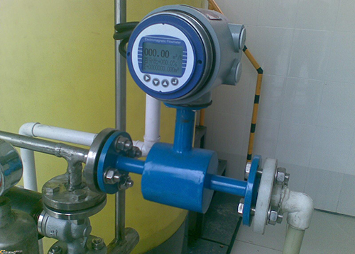 此時,如果具有一定電導率的流體流經(jīng)測量管。將切割磁力線感應出電動勢E。電動勢E正比于磁通量密度B,測量管內徑d與平均流速v的乘積。電動勢E(流量信號)由電*檢出并通過電纜送至轉換器。轉換器將流量信號放大處理后,可顯示流體流量,并能輸出脈沖,模擬電流等信號,用于流量的控制和調節(jié)。