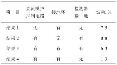 結(jié)果 4:直流噪聲抑制電路和檢測器不接地 ,接地環(huán)分流了漏電流,因而輸出波動遠小于其他結(jié)果。