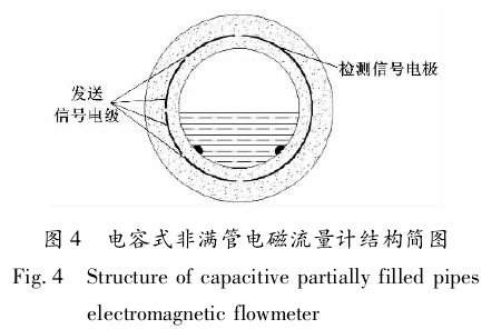 ②電容式非滿(mǎn)管渠道排水流量計(jì)h。電容式非滿(mǎn)管渠道排水流量計(jì)結(jié)構(gòu)簡(jiǎn)圖如圖4所示。、檢測(cè)信號(hào)電* 發(fā)送信號(hào)電