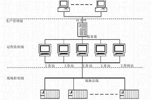 針對鎢礦選廠生產(chǎn)的實際需求,這里應用相應的自動化技術(shù),對自動化監(jiān)控系統(tǒng)進行了設(shè)計。在系統(tǒng)設(shè)計中,遵循“方案合理、技術(shù)先進、運行可靠、操作方便”的原則,系統(tǒng)整體采用集散控制系統(tǒng),基于現(xiàn)場總線通訊,其整體網(wǎng)絡(luò)構(gòu)架如下: