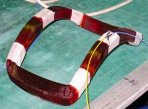 由此可見,給水流量計正常運行需要有穩(wěn)定的磁場,而磁場正是靠傳感器線圈內的 勵磁電流來產生的。勵磁線圈如圖2所示。