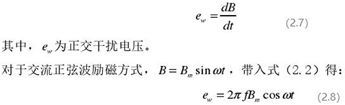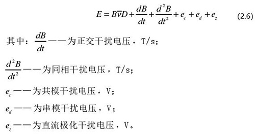 從上圖 2.5 中可以觀察到兩個(gè)電*、勵(lì)磁線圈、轉(zhuǎn)換器內(nèi)阻之間形成了一個(gè)閉合回路,將此回路稱之為初級(jí)繞組,從理論上進(jìn)行分析,磁力線 B 應(yīng)當(dāng)平行于勵(lì)磁線圈所產(chǎn)生的磁感應(yīng)線,但在實(shí)際的應(yīng)用過程中由于工藝差異,因此無法達(dá)到理想狀態(tài),會(huì)產(chǎn)生磁力線穿過勵(lì)磁線圈磁感應(yīng)線的情況,此時(shí)將會(huì)產(chǎn)生相應(yīng)的感應(yīng)電動(dòng)勢(shì),將此部分感應(yīng)電動(dòng)勢(shì)稱為變壓器效應(yīng)。此效應(yīng)同樣滿足于楞次定律,利用楞次定律進(jìn)行計(jì)算可得如下電動(dòng)勢(shì):