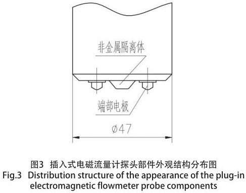 基于以上目的,為了降低外發(fā)射磁場的電磁流速傳感器所產(chǎn)生的感應(yīng)信號受信號流體和磁場的邊界層厚度影響,會降低測量的線性度,通過一體化的特殊優(yōu)化設(shè)計,在外徑為:Ф47mm(因為需要使用 2 〃螺紋球閥,球閥通孔直徑為:50mm 的緣故),內(nèi)徑為:Ф40mm,長度為:77mm的空間內(nèi)進(jìn)行布置各個相關(guān)零、部件(兩個電*、兩個電*加長桿,勵磁線圈部件),應(yīng)用法拉*電磁感應(yīng)定律和尼庫接磁(NIKURADS)原理,將磁感應(yīng)強度充分發(fā)揮,達(dá)到高準(zhǔn)確度、高可靠性、寬范圍的流體測量,同時采用新材料、新工藝,該結(jié)構(gòu)還具有耐高溫,并且適用于大口徑管道的流體測量等特性。