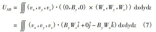 式中V為管道法蘭式電磁流量計傳感器測量空間;W→為權(quán)函數(shù)。在直角坐標(biāo)系(x,y,z)中,式(5)可以轉(zhuǎn)換為