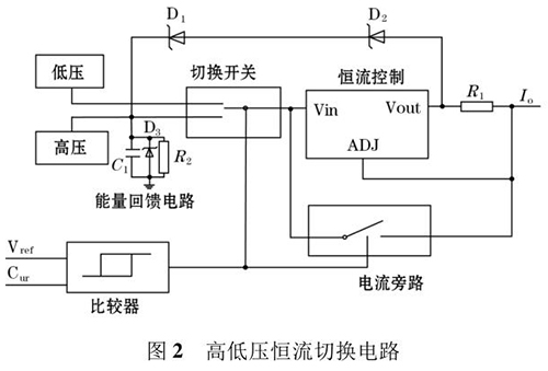 高頻勵(lì)磁電路主要由高低壓切換恒流控制電路和H 橋勵(lì)磁開(kāi)關(guān)電路組成。其中高低壓切換恒流控制電路確保高壓或低壓情況,都可以通過(guò) H 橋向勵(lì)磁線圈提供恒定的電流。電路原理圖如圖 2所示。