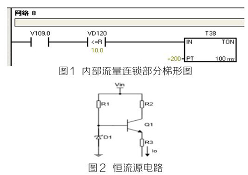 (2)PLC及模塊。PLC及模塊是自動化控制系統(tǒng)主要設(shè)備,且PLC及模塊屬于高集成高精密電子設(shè)備,保持室內(nèi)整潔舒適,可以提高自動化系統(tǒng)運(yùn)行穩(wěn)定性。PLC及模塊硬件運(yùn)行可靠,內(nèi)部控制程序是其控制核心軟件,如PLC硬件出現(xiàn)故障或損壞一般直接更換,但原內(nèi)部控制軟件無法上傳,整個控制系統(tǒng)成失控狀態(tài)。所以其內(nèi)部控制程序在調(diào)試驗收合格后應(yīng)及時備份并做好標(biāo)記,為以后修復(fù)PLC故障提供保障。PLC系統(tǒng)的維護(hù)技術(shù)人員需掌握一定基礎(chǔ)PLC控制邏輯原理,對準(zhǔn)確判斷PLC故障點有很大的幫助。例如選礦廠水泵房S7-200系列PLC自動抽水系統(tǒng)出現(xiàn)如下故障 :觸摸屏能控制變頻器啟動水泵抽水,但在短時間內(nèi)會自動停泵,導(dǎo)致無法正常抽水。通過故障現(xiàn)象可初步判斷PLC及模塊硬件設(shè)備正常,主要由于某個變量有問題導(dǎo)致連鎖停機(jī)。打開備份PLC控制梯形圖程序進(jìn)行相關(guān)分析,原來是氨水流量計瞬時流量數(shù)值做了連鎖,其在一定時間內(nèi)瞬時流量不大于10m 3 /h時,自動停泵,電磁流量模擬量輸出電流值僅為4ma且無變化,確定氨水流量計有故障。可臨時應(yīng)急維修,模擬量模塊輸入模擬電流值10ma~20ma之間一固定數(shù)值即可恢復(fù)正常運(yùn)行。制作簡單恒流源電路代替氨水流量計輸出的模擬電流量,實現(xiàn)解決水泵無法正常運(yùn)行的故障。