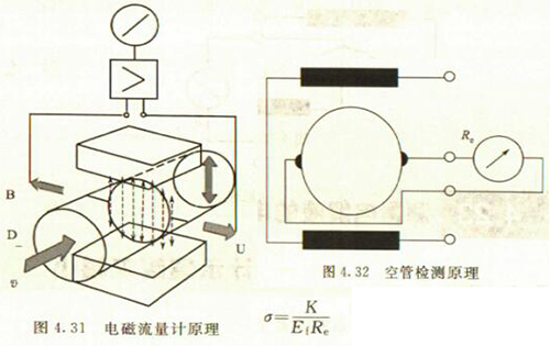 出水口流量計是專為測量導電液體的體積流量而設計的。測量原理是基于法拉*電磁感應定律。按照該定律,導電流體通過磁場作切割磁力線運動時,在垂直于磁場及流速的方向上產(chǎn)生感應電動勢,此電動勢由4.14節(jié)中的式4.24)給出。其原理如圖4.31所示。