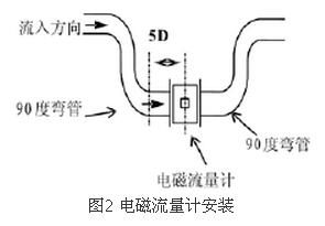 (2)直管段保證在前5D后3D為獲得儀表測量精確度,在傳感器上游側(cè)的直管段長度不小于5D,下游側(cè)不小于3D(D為傳感器的名義直徑)。若在傳感器上游側(cè)有兩個(gè)以上的彎頭或其它阻流件,則前置直管段應(yīng)大于10D。