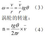 為了推導渦輪轉(zhuǎn)速和燃油質(zhì)量流率的關(guān)系,可先將渦輪展開,渦輪帶箭頭的斜線表示燃油流向。如果渦輪固定不動,流體流過葉片時將受到阻力,則當燃油離開渦輪的葉片時,將產(chǎn)生一個切向速度 V。