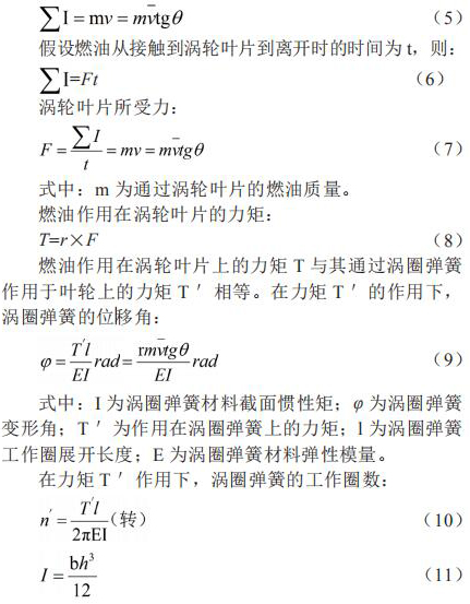 假設(shè)渦輪固定不動,燃油流過渦輪的葉片時將受到阻力,則當燃油離開渦輪的葉片時,將產(chǎn)生一個切向動量 mv,這個動量即為渦輪獲得沖量 。