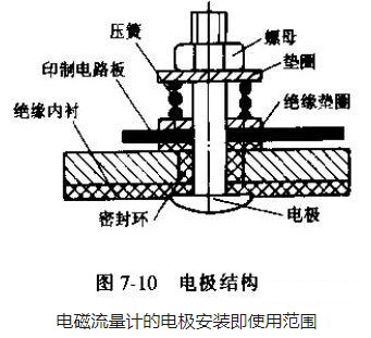 傳感器的電*安裝在與磁場(chǎng)垂直的測(cè)量管兩側(cè)管壁上,它的作用是把被測(cè)介質(zhì)切割磁力線所產(chǎn)生的電勢(shì)信號(hào)(流量信號(hào))引出,因此電*一般需直接與被測(cè)介質(zhì)接觸,其典型結(jié)構(gòu)如圖7-10所示。