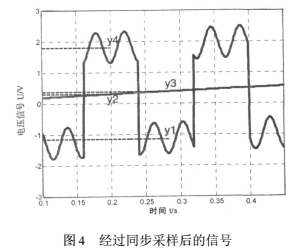 對于基線零點漂移,“正負差值法”是比較有效便捷的選擇,它不需要直接消除信號中的基線零點漂移,而是通過算法上去掉基線零點漂移對測量結(jié)果的影響。該系統(tǒng)中,激磁信號的頻率為6.25Hz,由于所測量的液體流速不會有明顯的突變,所以在信號的一個周期0.16s內(nèi),可以采用一個波峰減去波谷的均值來表示此時的流量信號,也即如圖3中|y4-y1|其中y4是從nT+T/4到nT+T/2采樣結(jié)果的算術平均值,y1是從到(n+1)T進行采樣結(jié)果的算術平均值。但是由于斜率零點漂移的存在,會出現(xiàn)如圖3中|y3-y2|的誤差,所以需要利用式(15)的結(jié)果對該誤差進行修正,修正后的結(jié)果也就是此時管道中液體感應出的電動勢為: